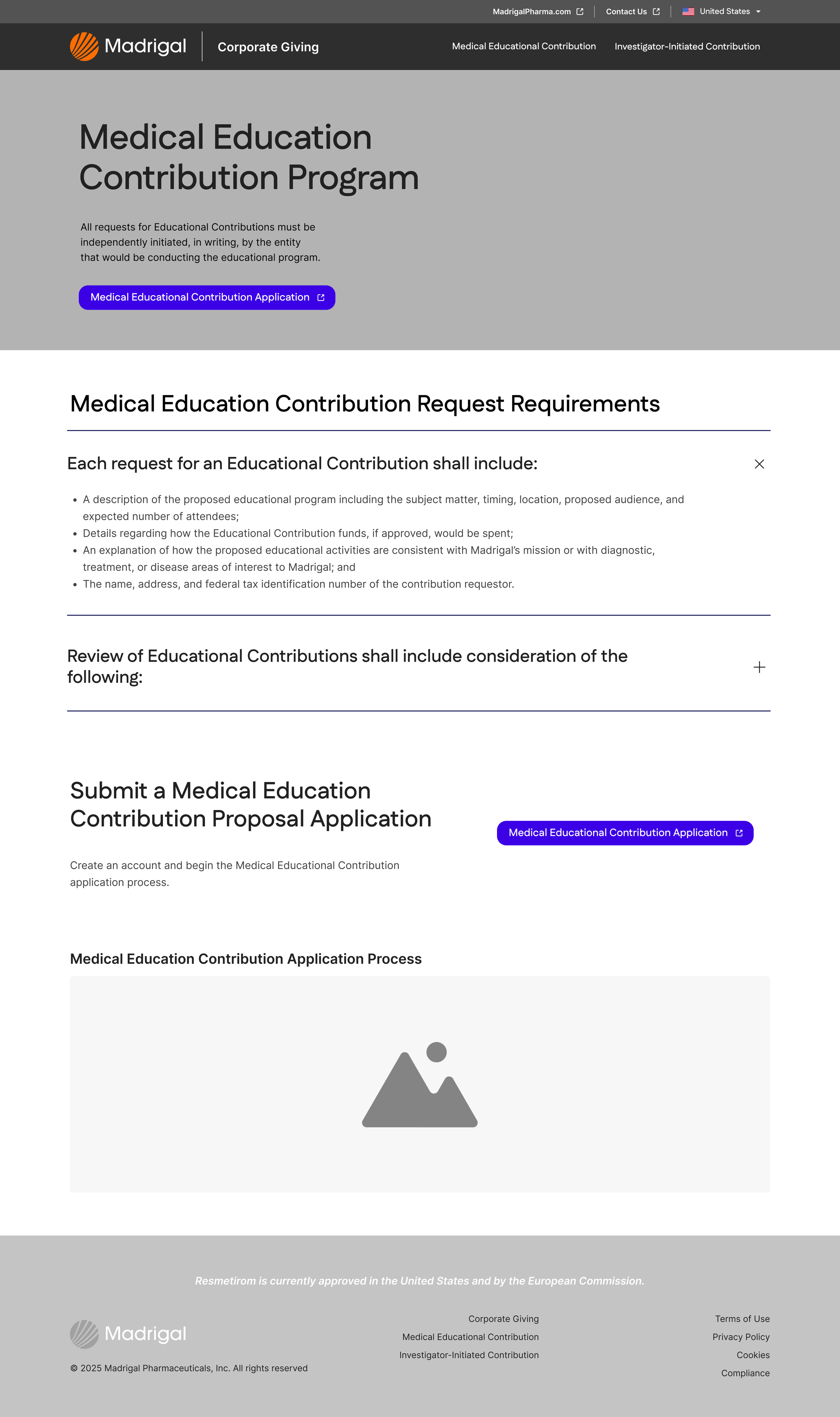 Clearly communicates Madrigal’s contribution programs and funding opportunities